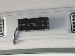 | 時計の裏側に強力両面テープを貼り、 エアコン吹き出し口中央部分に べったり貼り付けました。 |