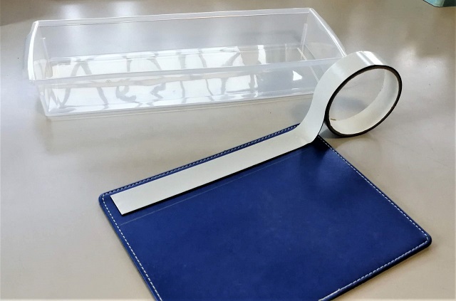 | A4ハーフトレーの裏に強力両面テープで貼り付けます。 |